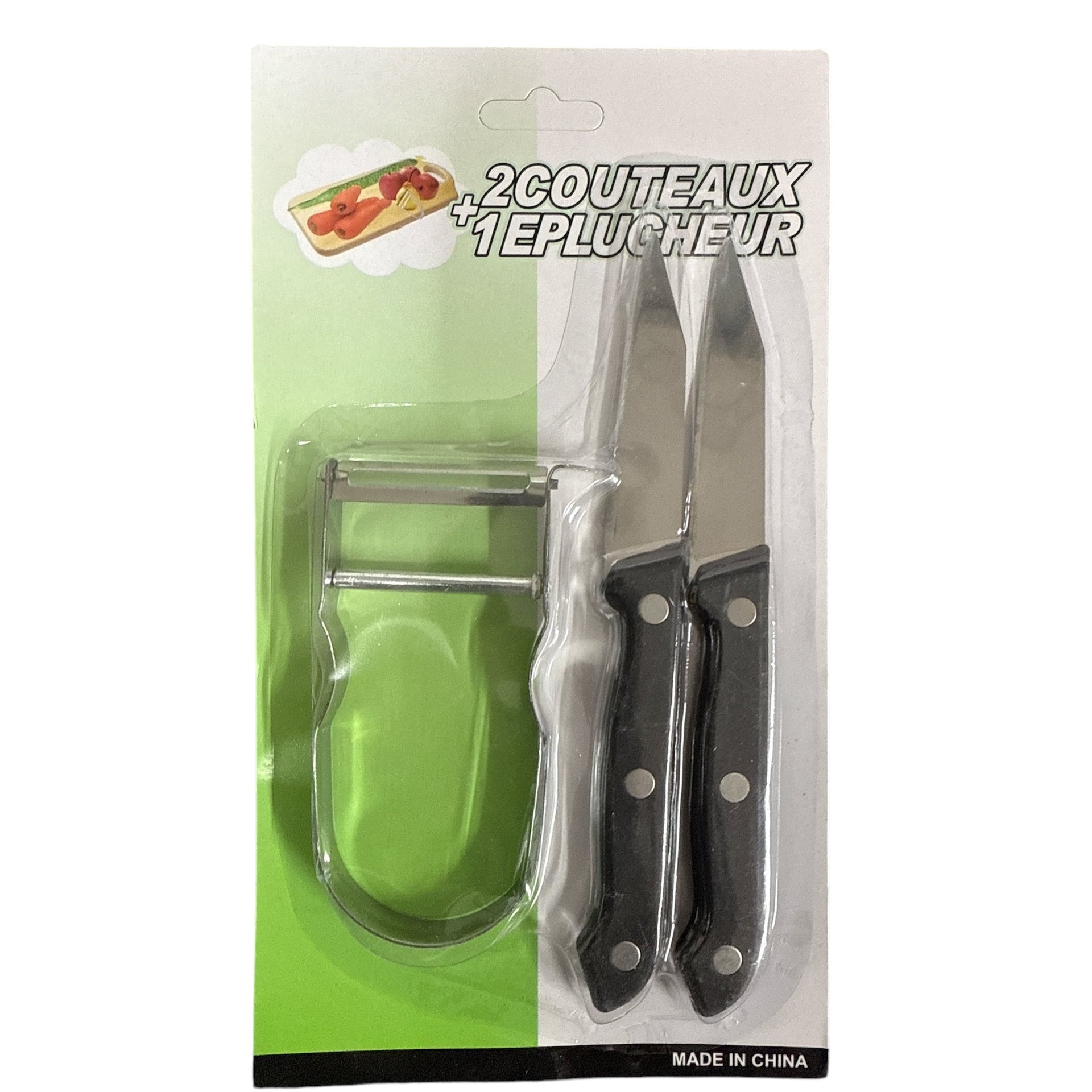 This Peeler & 2 Knives Set is perfect for all your kitchen needs. The set includes a sharp peeler and 2 versatile knives that can handle any cutting task. Made with high-quality materials, this set is durable and long-lasting, making meal prep a breeze. Elevate your cooking game with this essential set.