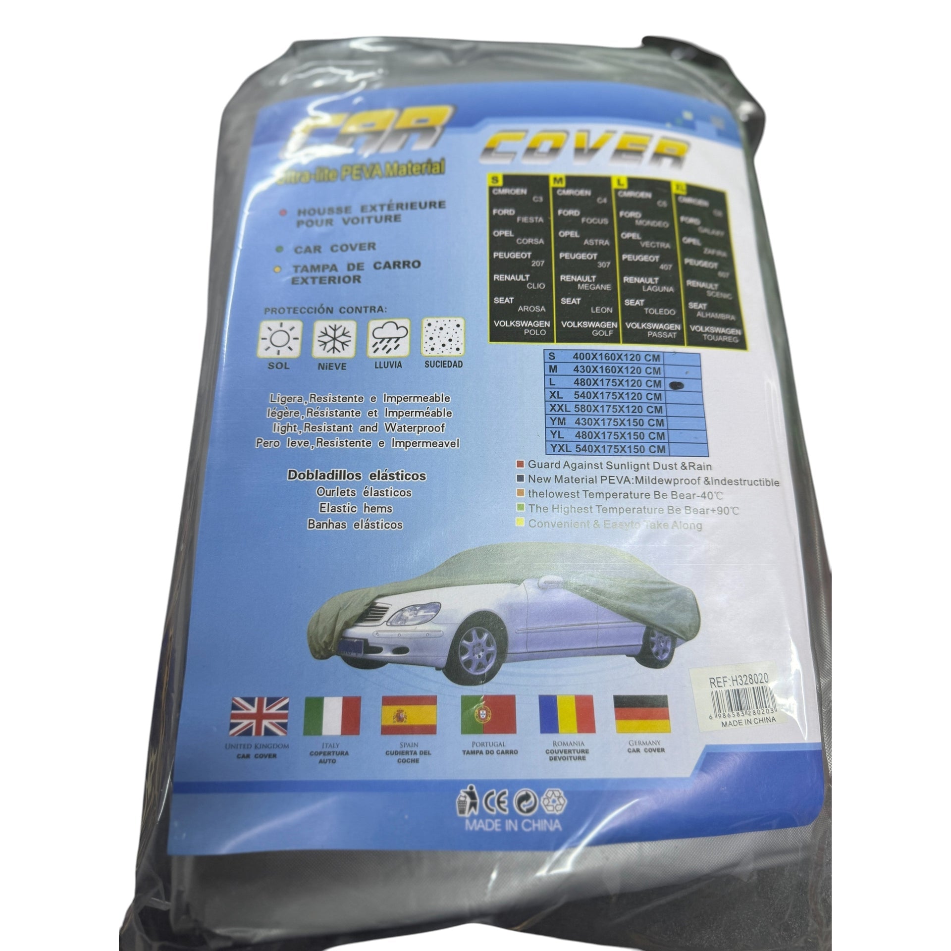 This car cover, measuring 480 cm in length, 175 cm in width, and 120 cm in height, offers precise protection tailored to fit a wide range of vehicles. Designed to shield your car from dust, dirt, and weather elements, it helps maintain your vehicle’s exterior condition. Its dimensions ensure comprehensive coverage, making it an essential accessory for preserving your car’s finish and preventing damage from environmental exposure.